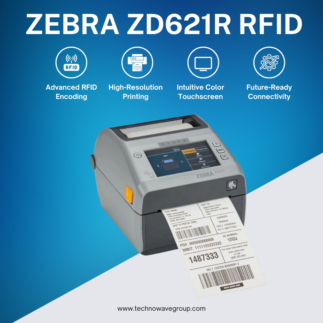 Designed for businesses that demand outstanding print quality, flexible applications, and future-ready technology, the ZD621R sets the benchmark for RFID desktop printing.